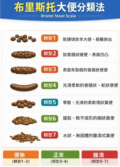 家長可以參考國際通用的「布里斯托大便分類法(Bristol Stool Scale)」來觀察。如果孩子的糞便呈現如羊屎般一粒粒的硬球(第一型),或是表面龜裂的粗長條狀(第二型),這代表糞便在大腸停留過久,水分已被吸乾,是很典型的水分與纖維攝取不足信號。除此之外,觀察尿液也是一個好方法,如果尿液顏色濃而且偏黃,代表孩子一天的飲水量絕對不夠。透過這些日常的小細節,就更能精準地揪出孩子腸胃不適的元兇。